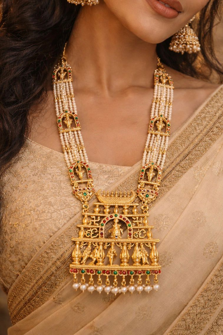 (W12) Ram Parivar Antique Temple Necklace.